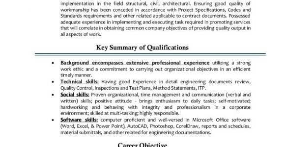 Sample Resume Quality Control Civil Engineer - A resume is a formal document that contains a summary of relevant ham it up experience and education and is usually created for the ambition of obta...