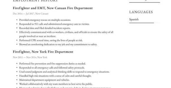 Samples Of Resume for Job as A New Fire Fighter