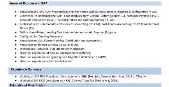 Sap Fico Sample Resume for Experienced - A resume is a formal document that contains a summary of relevant behave experience and education and is usually created for the object of obtaining a job...