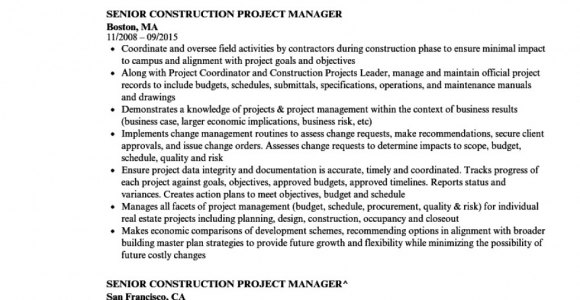 Senior Construction Project Manager Resume Samples Senior Construction Project Manager In Nyc Resume