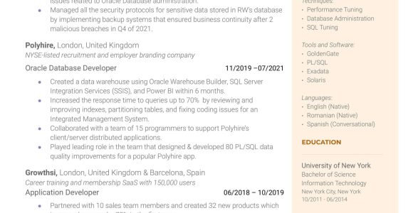 Sql Server Dba Resume Sample with Experience Of Macros