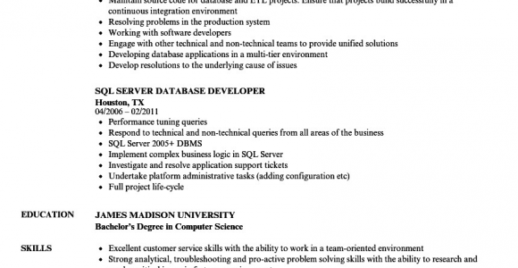 Sql Server Database Developer Resume Sample Junior Sql Developer Responsibilities the Best Developer