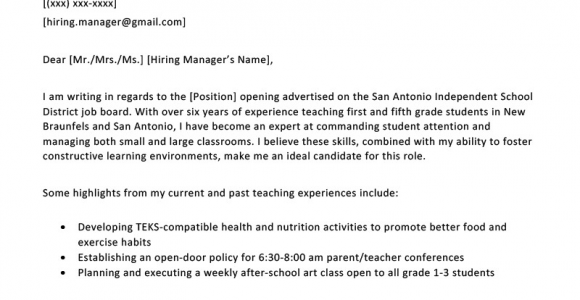 New Teacher Resume Cover Letter Sample Teacher Cover Letter Examples for Any Teaching Position