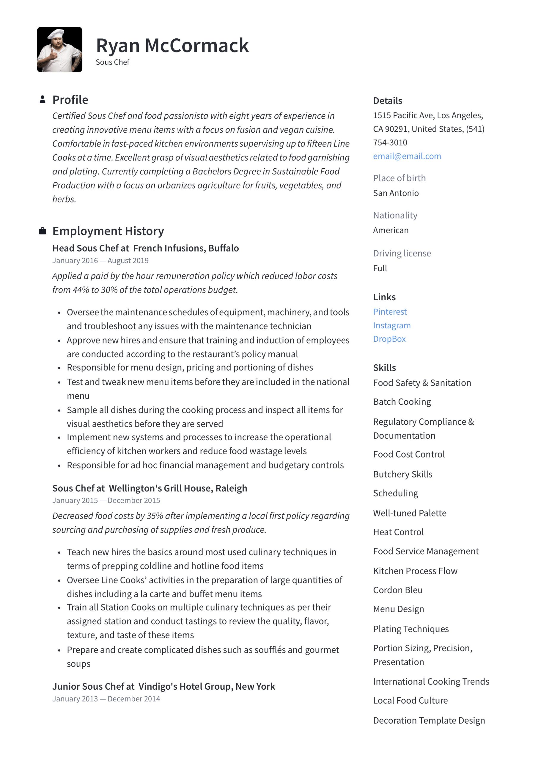 have new images for The Best Resume Sample Of sous Chef sous Chef Resume & Writing Guide 12 Resume Examples 2020? please contact us immediately.