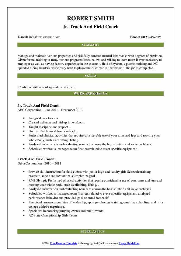 Track and Field Coach Resume Sample Track and Field Coach Resume Samples and all other pictures, designs or photos on our website are copyright of their respective owners. we get our pictures from another websites, search engines and other sources to use as an inspiration for you. please contact us if you think we are infringing copyright of your pictures using contact page. we will be very happy to help you.