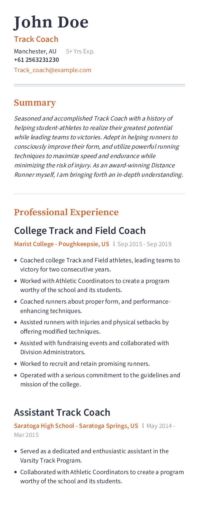 Track and Field Resume athlete Sample Track Coach Resume Example with Content Sample Craftmycv and all other pictures, designs or photos on our website are copyright of their respective owners. we get our pictures from another websites, search engines and other sources to use as an inspiration for you. please contact us if you think we are infringing copyright of your pictures using contact page. we will be very happy to help you.