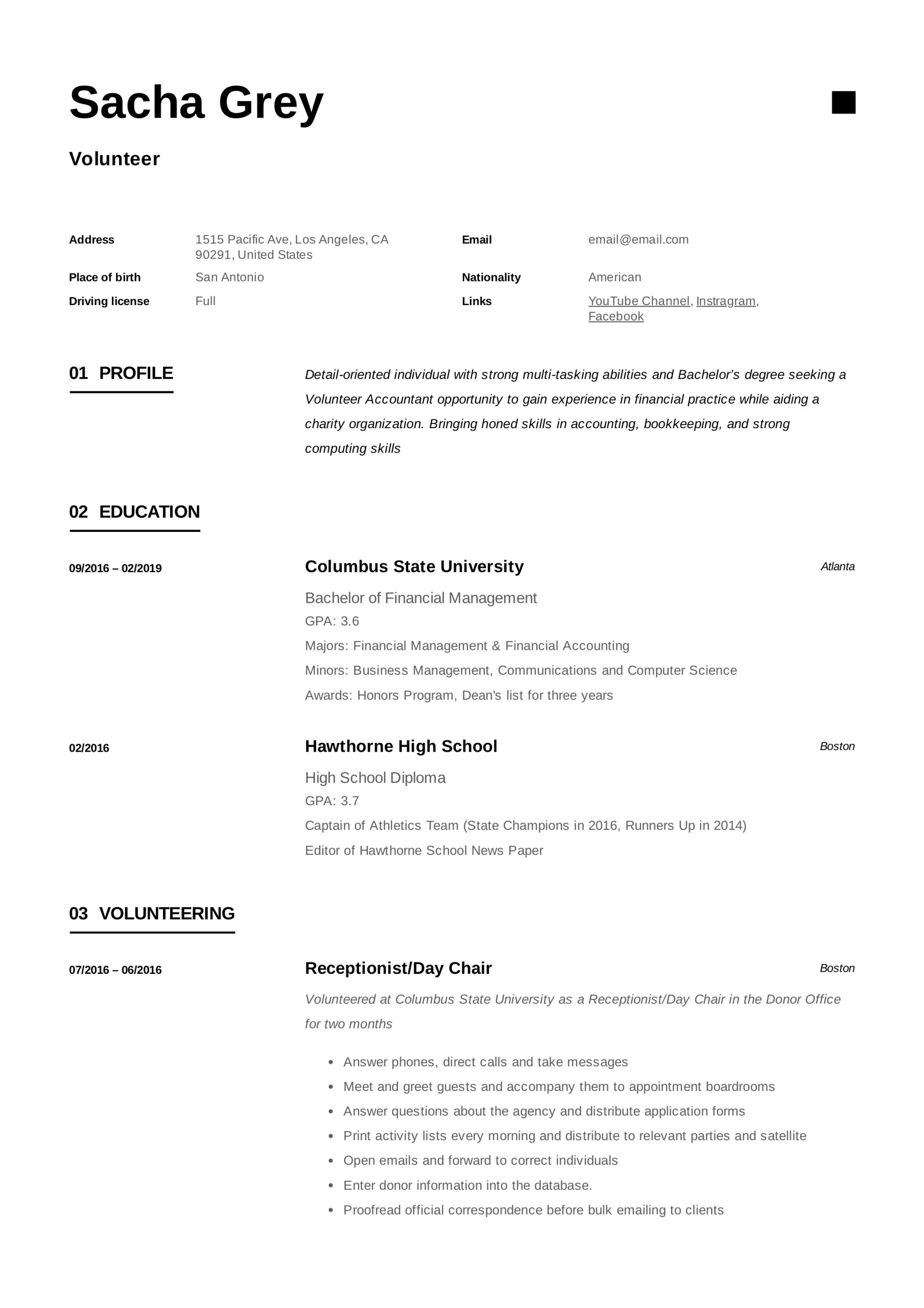 Volunteer Accompanied Patient with Activities Resume Sample Volunteer Resume Sample & Writing Guide – Pdf’s 2019 and all other pictures, designs or photos on our website are copyright of their respective owners. we get our pictures from another websites, search engines and other sources to use as an inspiration for you. please contact us if you think we are infringing copyright of your pictures using contact page. we will be very happy to help you.