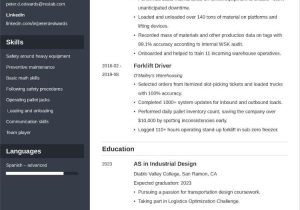 Back To Warehouse Jobs forklift Driver Resume Sample
