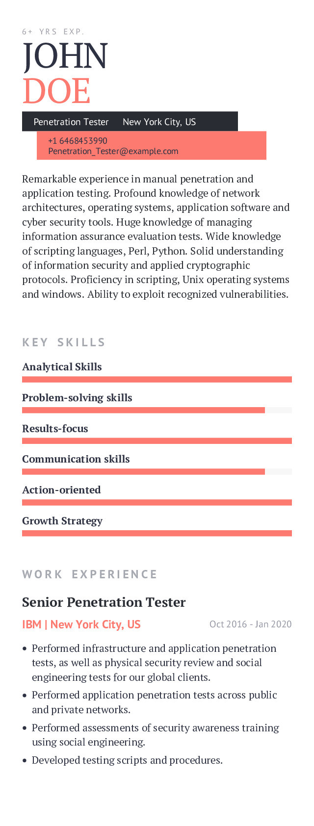 Web Application Security Testing Sample Resume Penetration Tester Resume Example with Content Sample Craftmycv and all other pictures, designs or photos on our website are copyright of their respective owners. we get our pictures from another websites, search engines and other sources to use as an inspiration for you. please contact us if you think we are infringing copyright of your pictures using contact page. we will be very happy to help you.